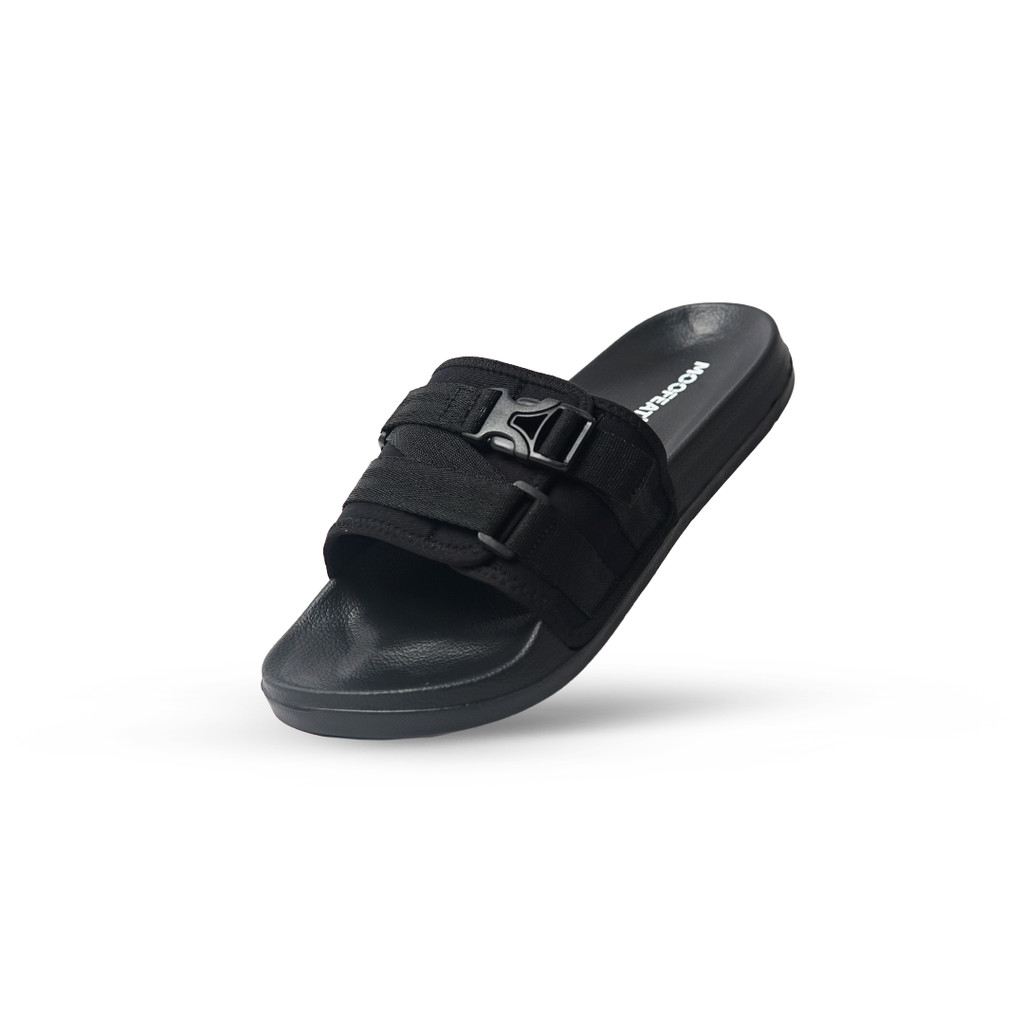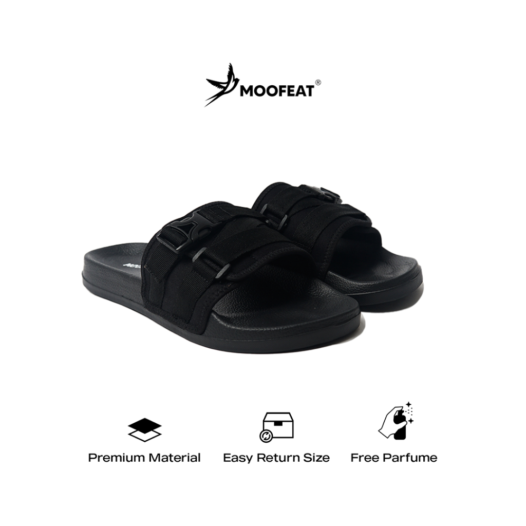 Moofeat - Boston Sandal Slide Slip On Casual Strap Hitam