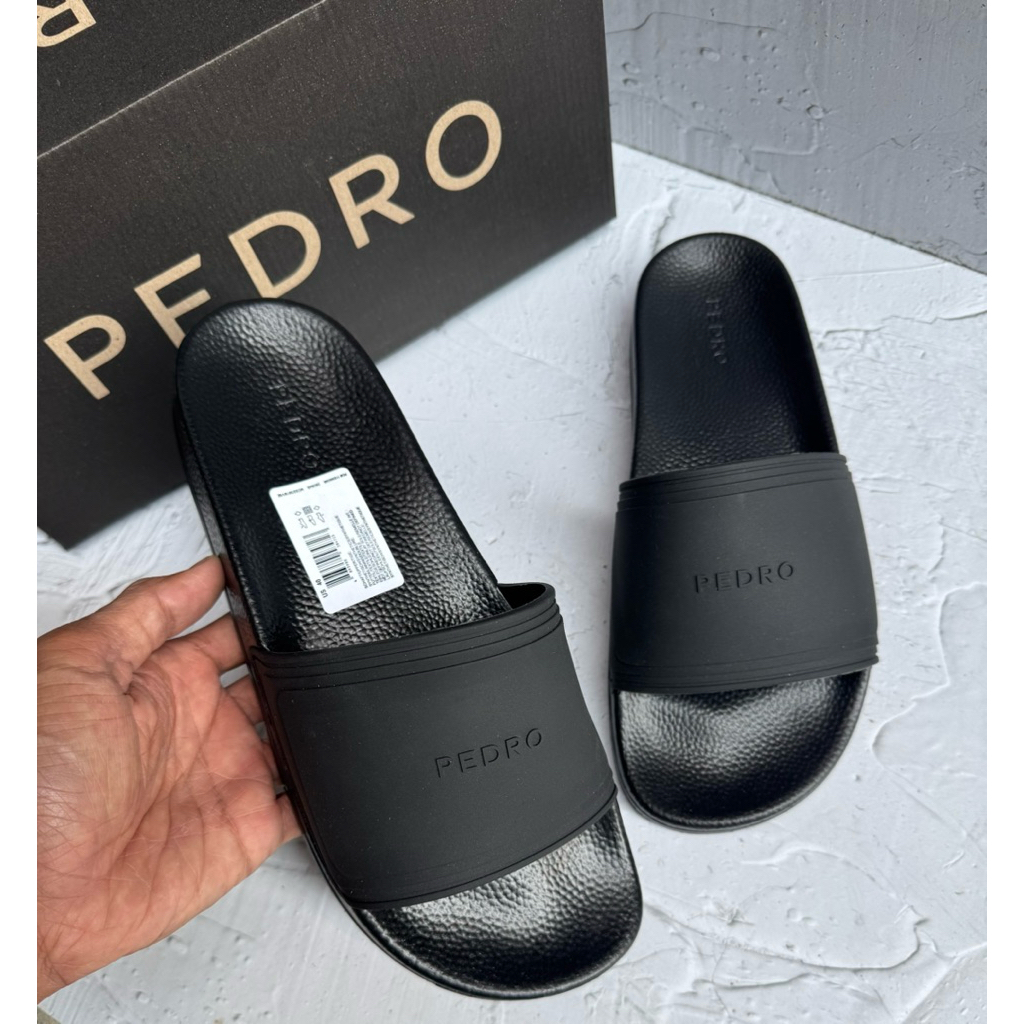 sandal slip on premium || 12pdr || HITAM POLOS FULL BLACK