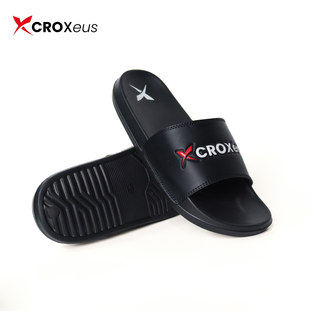 CROXEUS - Sandal Sendal Selop Slip On Casual Pria Wanita Black Red Basic