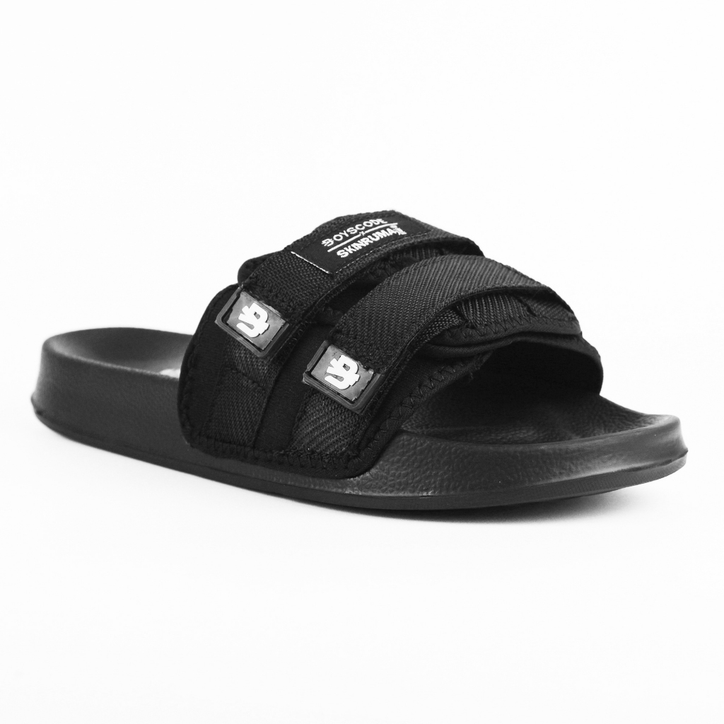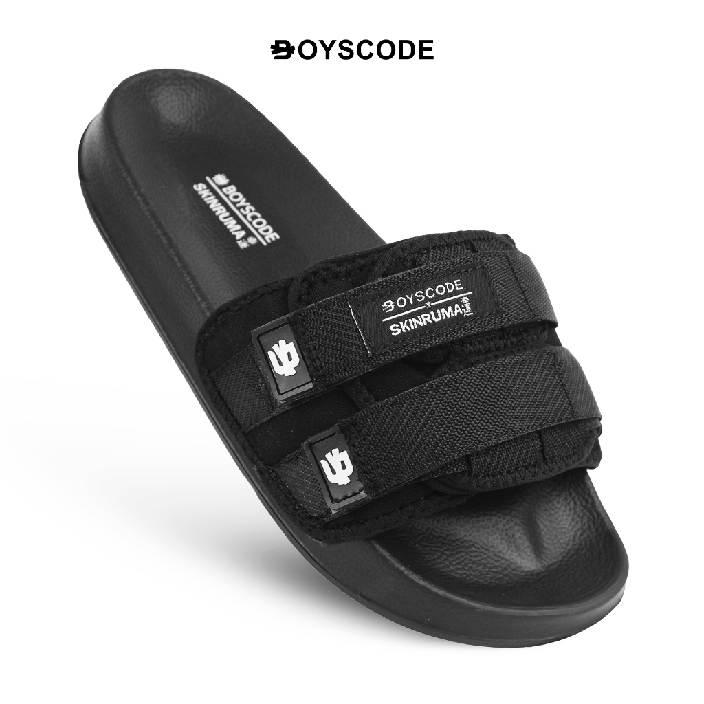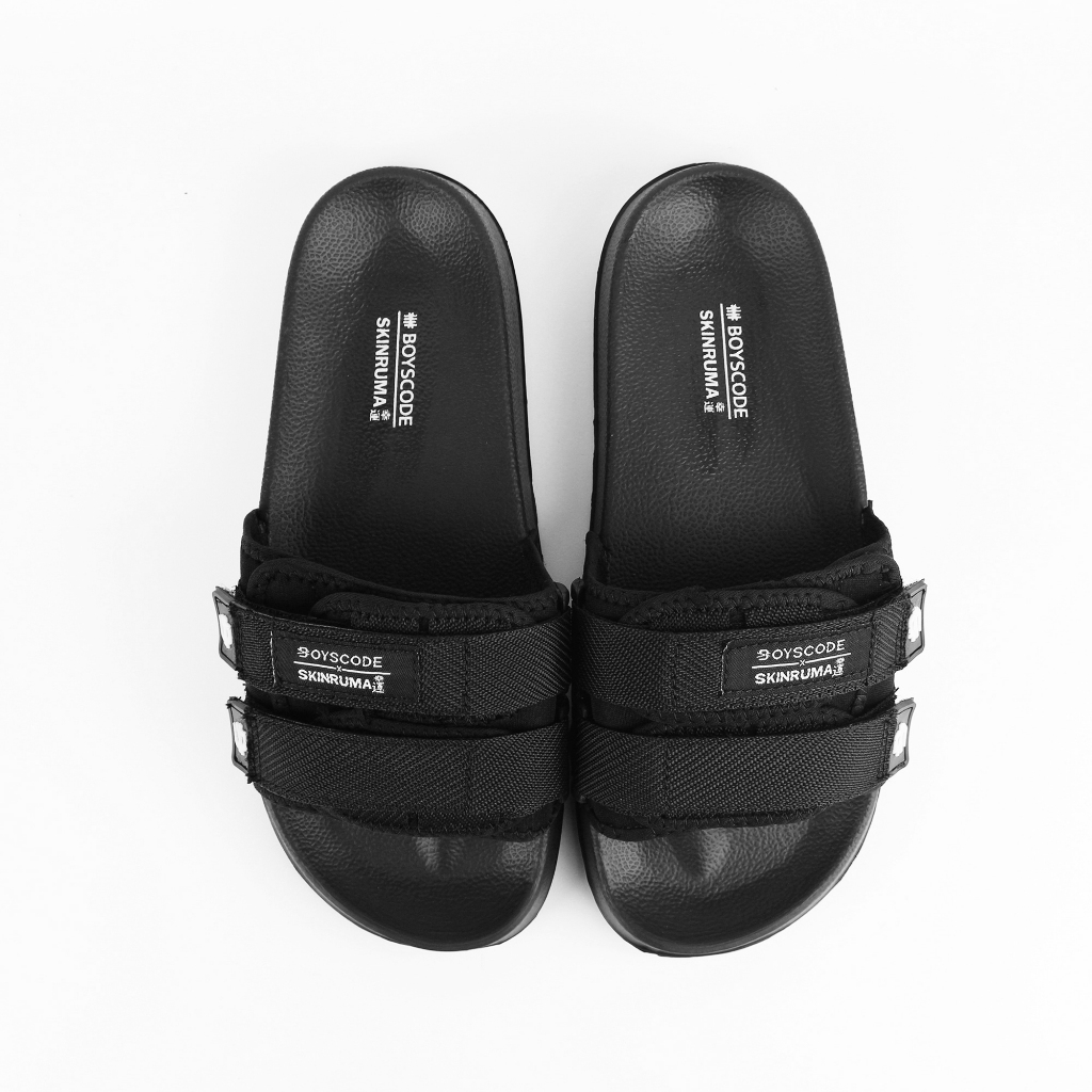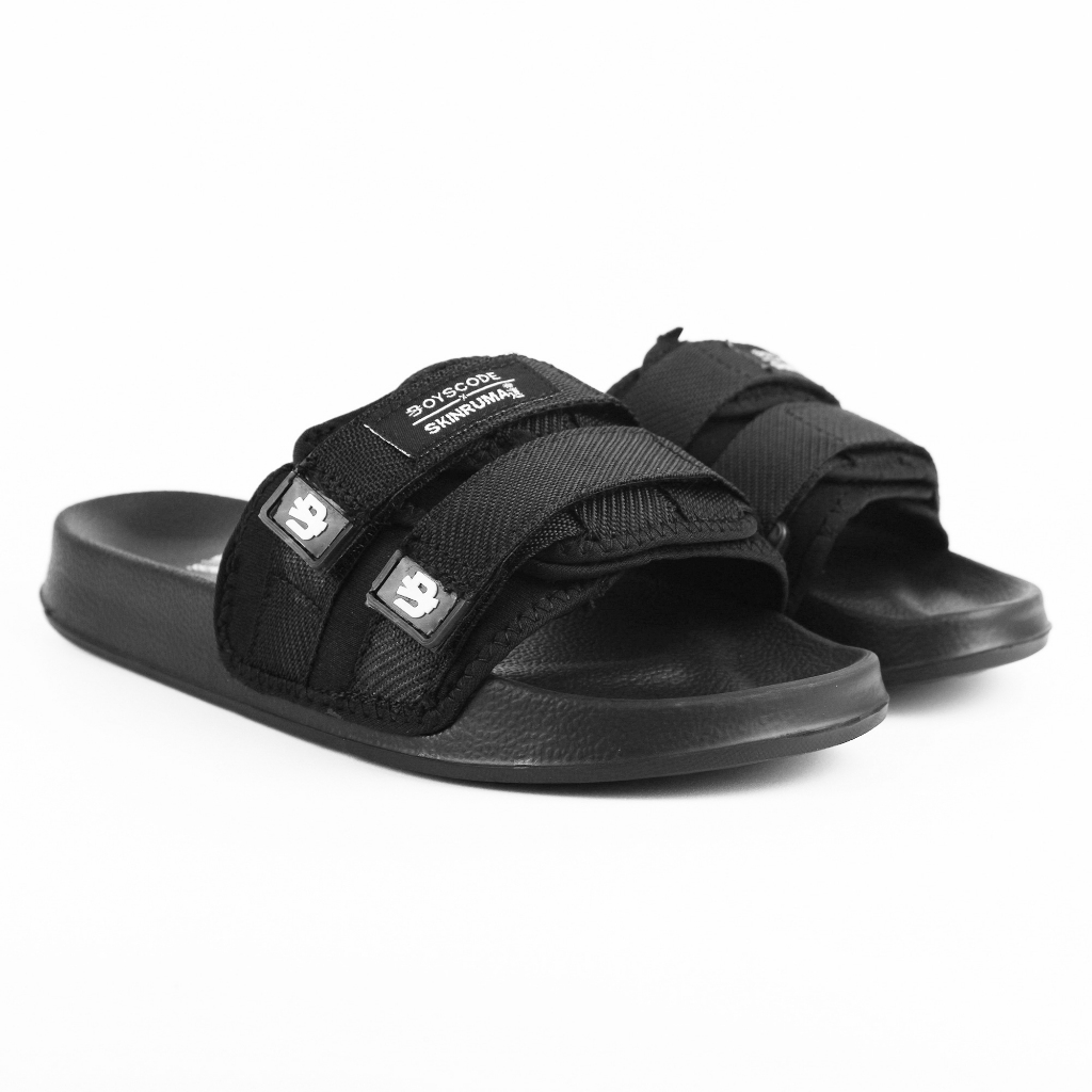 Sendal Selop Strap Distro Pria Wanita BOYSE Shiro Hitam / Slip On / Slide / Slop Kekinian