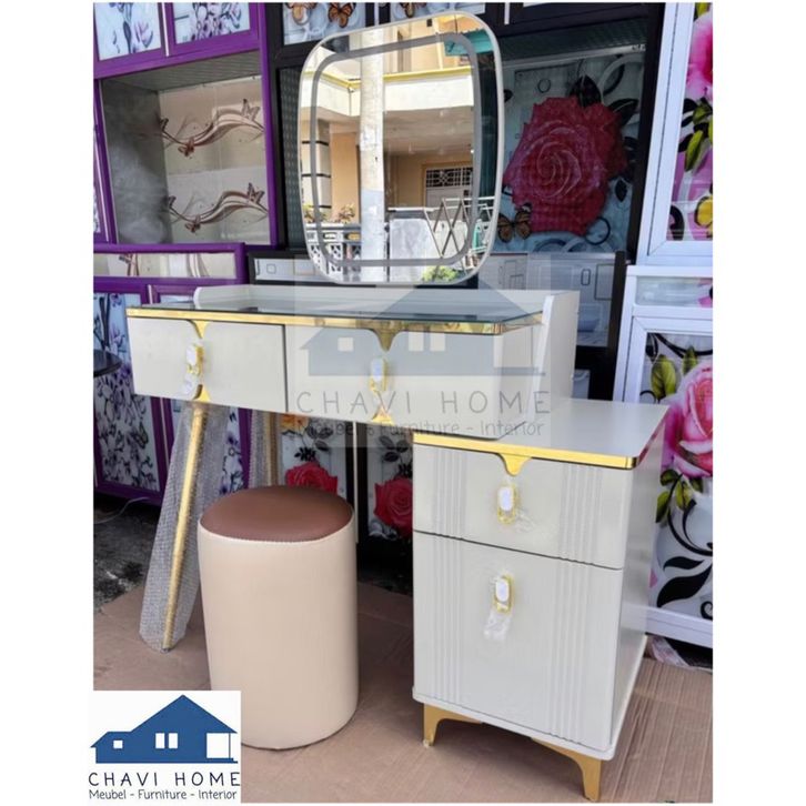 MEJA RIAS DENGAN LAMPU LENGKAP DENGAN KURSI DAN DRAWER LACI SEKAT CHAVIHOME TERMURAH SIAP KIRIM HARI INI