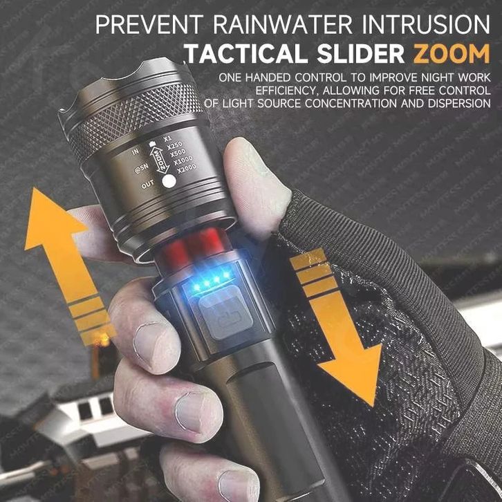Senter LED Super Terang 10000 Lumens Jarak Jauh Ringan Tahan Air IPX4 Zoom USB Rechargeable Senter Swat Police Terb