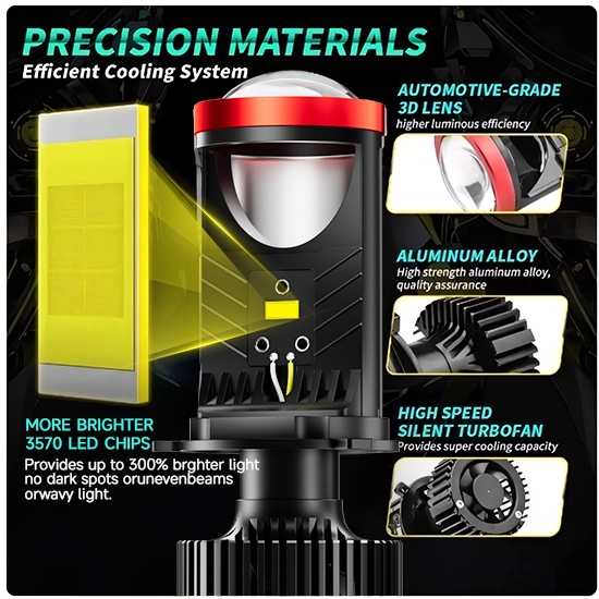 [Star] Lampu Led Mobil Dan Motor H4 Super Terang Original Mini Pjector Projie Lampu H4 140W Super Terang Lampu Led Moto