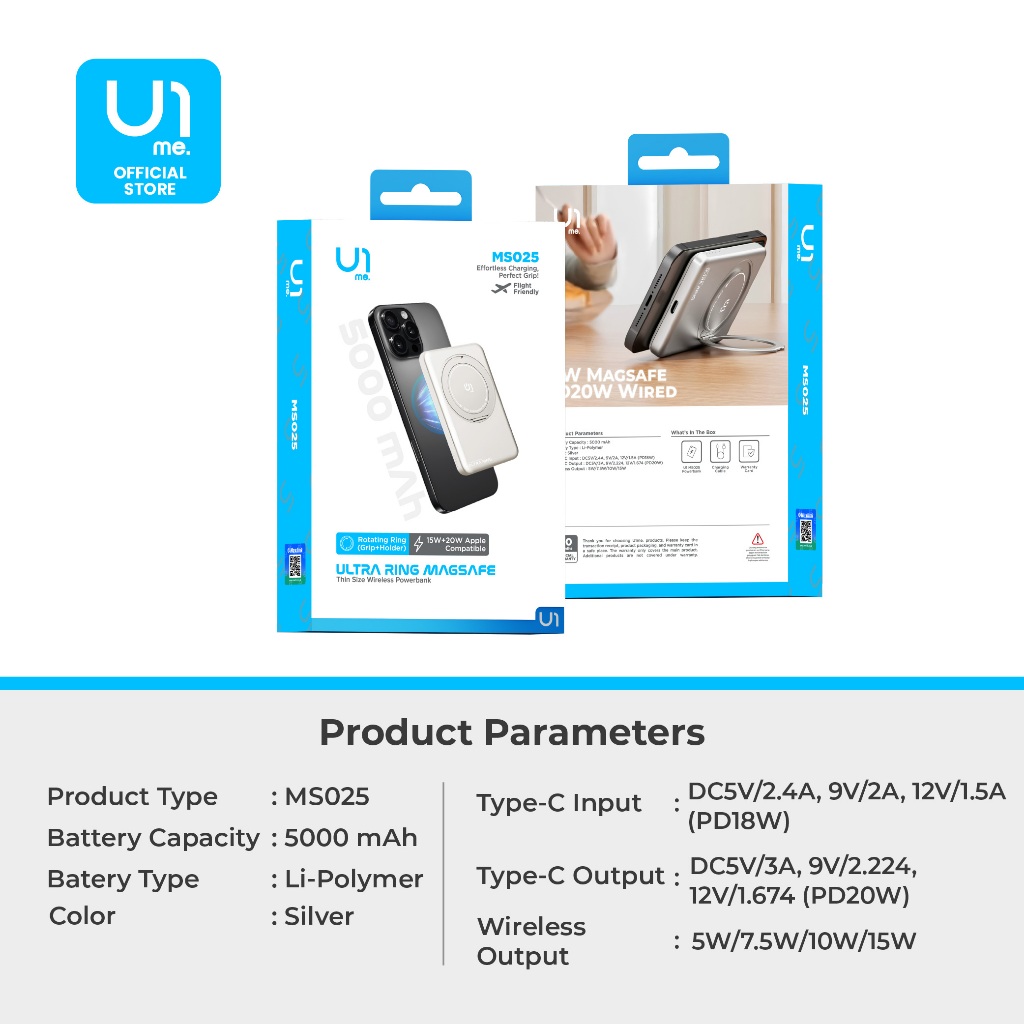 [Star] Powerbank U1me Ultra Ring 5000 mAh PD 20W Fast Charging Type C Powerbank Wireless
