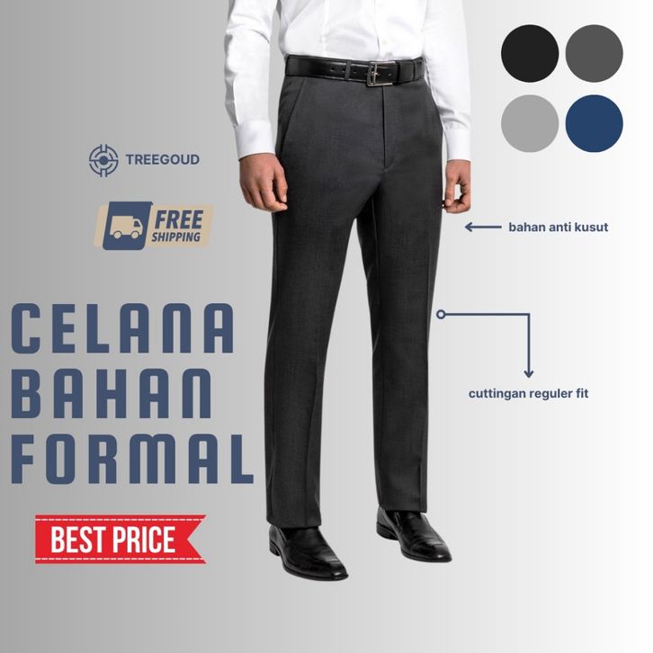 NEW Treegoud Celana Bahan Hitam Pria Celana Kantor Model Reguler Celana Bahan Pria Reguler usihk