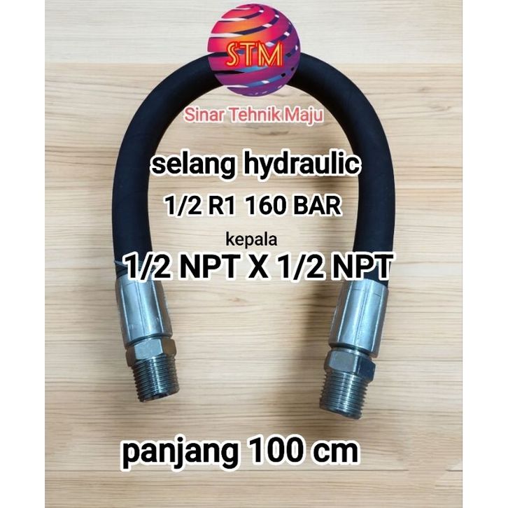 selang hidrolik hose hydraulic 1/2 R1 100 cm 1/2 NPT X 1/2 NPT