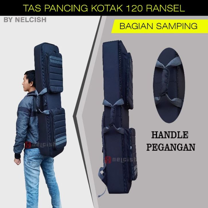 Tas Pancing Joran Kotak 120cm Ransel Custom Hitam Grey Cover Sarung Mancing