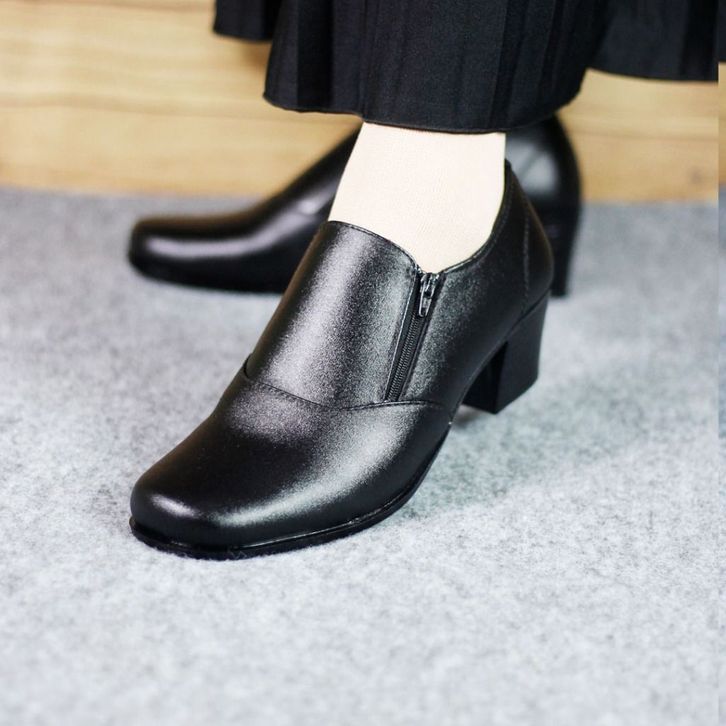 Lika Glady - Sepatu Pantofel Wanita Kulit Heels Formal Kerja Resleting Hitam Hak 5 Cm
