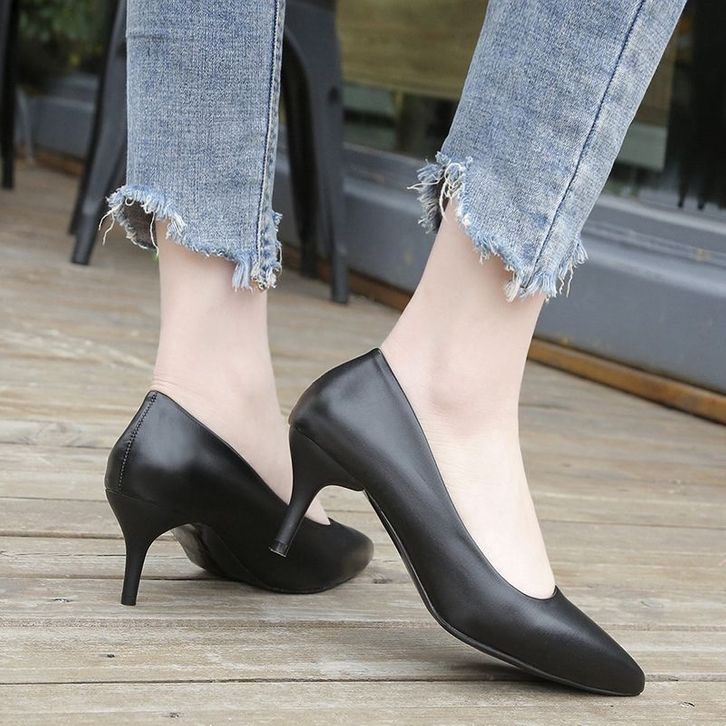 D118 Tinggi 3/5/7cm hitam Sepatu hak tinggi klasik Sepatu wanita impor Sepatu kerja wanita