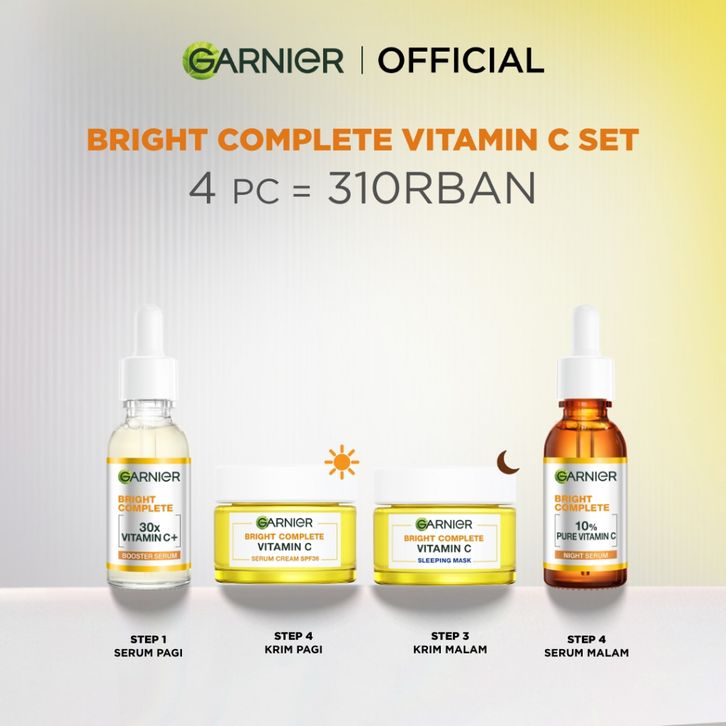 Garnier Vitamin C Complete Kit Bright Complete Serum 30 ml + Overnight Serum 30ml + Bright Complete Night Cream 50ml +