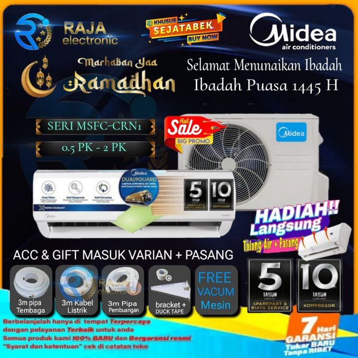 ac 1 2 pk AC Midea 1/2 PK MSFC-05CRN2X New Series FIN Anti Karat Anti Jamur Bergaransi Resmi Midea Toshiba + Instalasi
