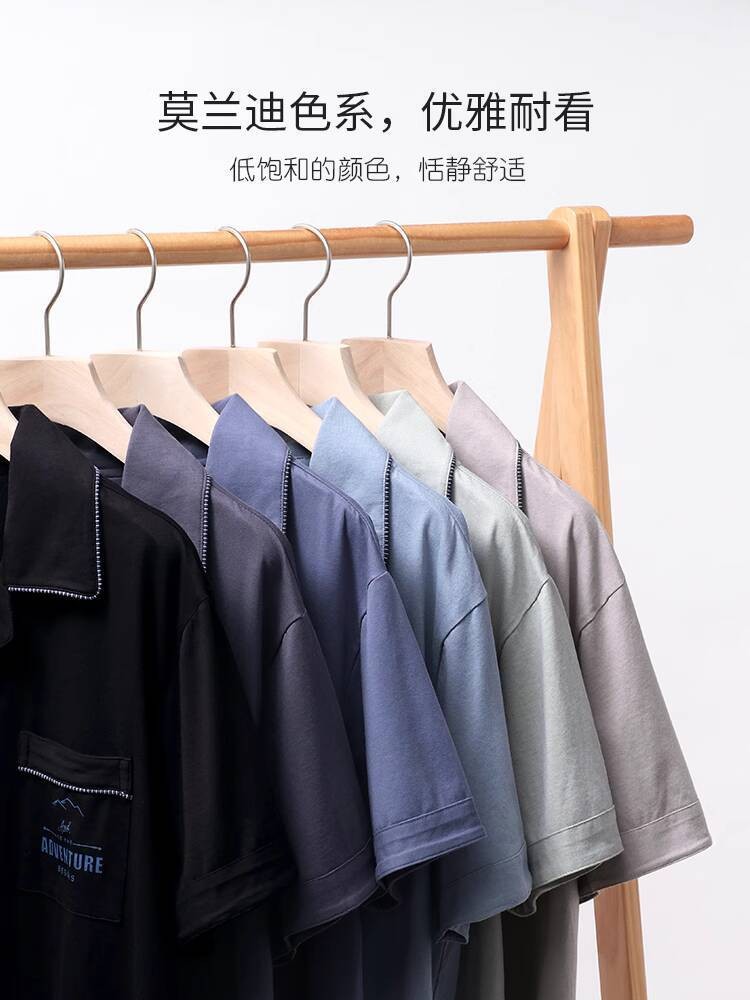 Piyama Pria Carrefen Katun Lengan Pendek Celana Panjang Pakaian Rumah Set Musim Panas Tipis Ukuran Besar