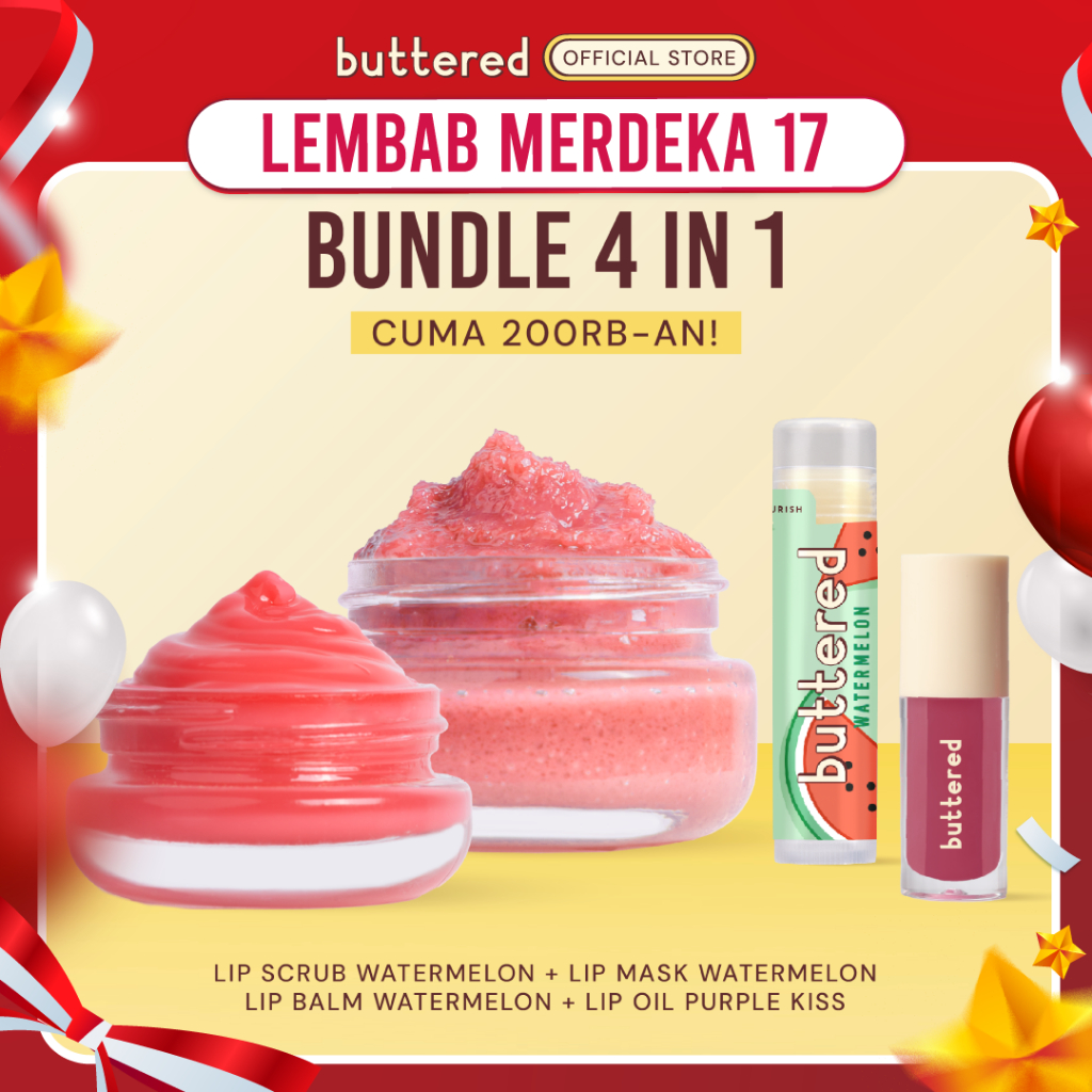 Buttered Paket Lengkap Bundle 4 in 1 Gloss & Glow Precision Lip Treatment