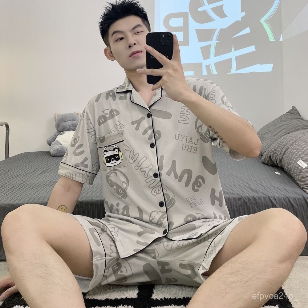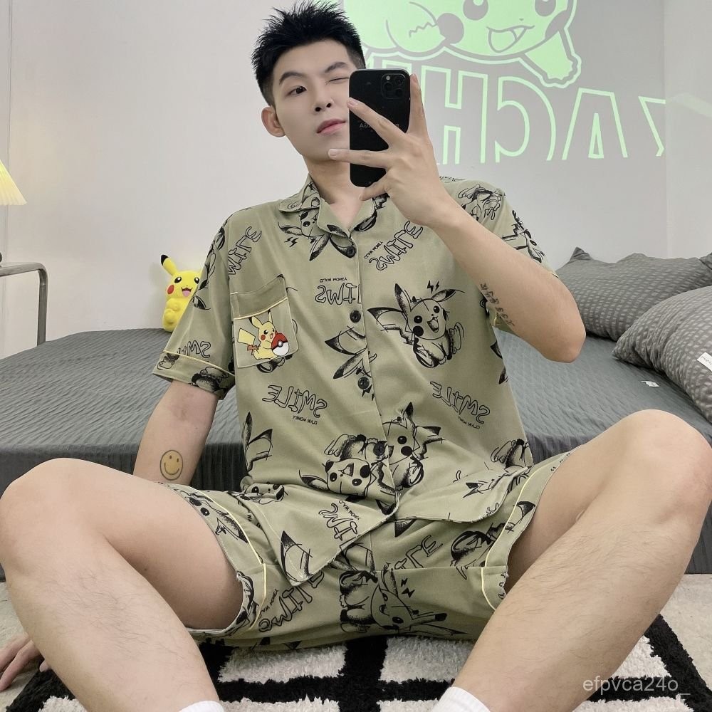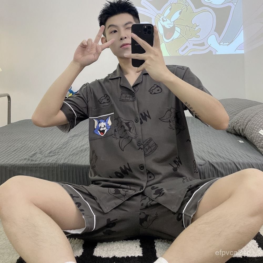 Set Piyama Pria Pola Kartun Terbaru/Atasan Cardigan Celana Pendek Pakaian Santai