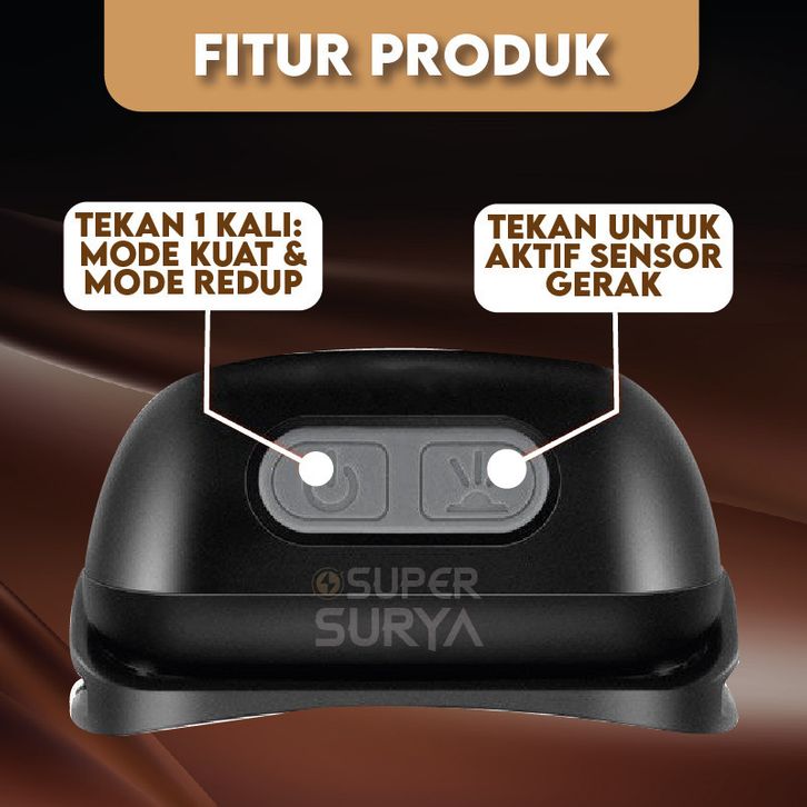 Senter Kepala Sensor Gerak Tangan 10 cm Cas USB Waterproof IPX4 Headlamp Lampu