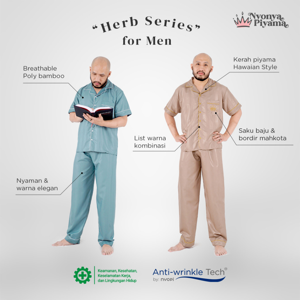 [BEST SELLER] Nyonya Piyama Poly Bamboo Set Piyama Celana Panjang Pria (Herb Series) new