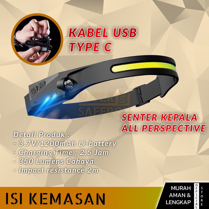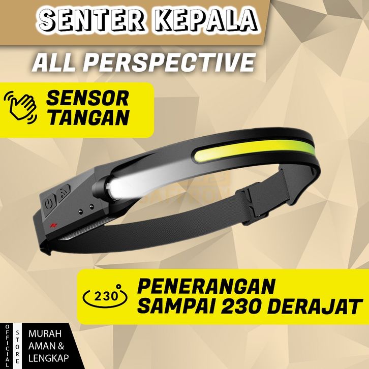 Senter Kepala Seluruh Perspektif COB XPE Sensor Wave IPX4 Waterproof