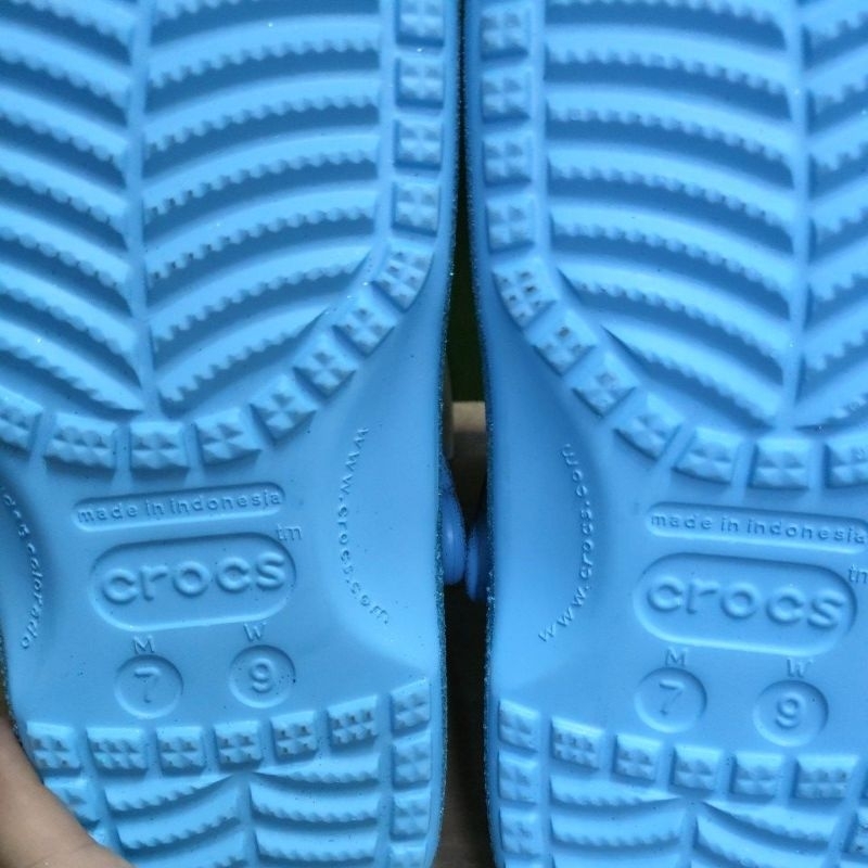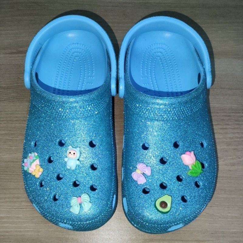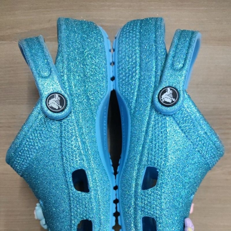 SANDAL CROCS M7 W9 GLITTER TINTED GLASS CLASSIC CLOG GLITTER TOSCA BIRU BLUE NO CUTTING MADE IN INDONESIA 40-41 M7W9 ASL