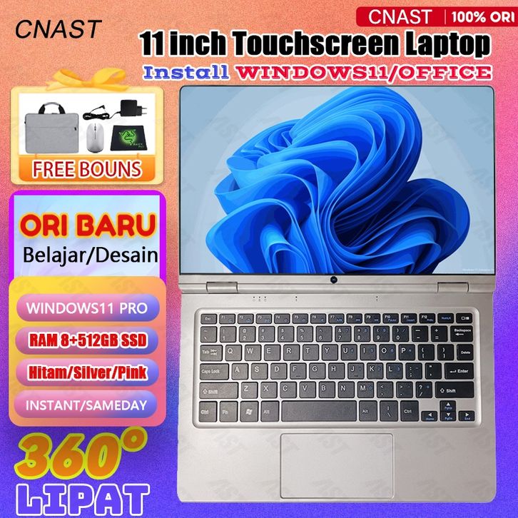 512GB SSD CNAST Laptop Touchscreen 3jt murah Intel N4020 2in1 hitam/silver/pink ori mini 11 inch