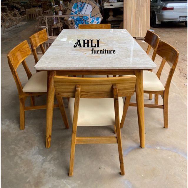 Set Meja Makan Jati Top Table Marmer