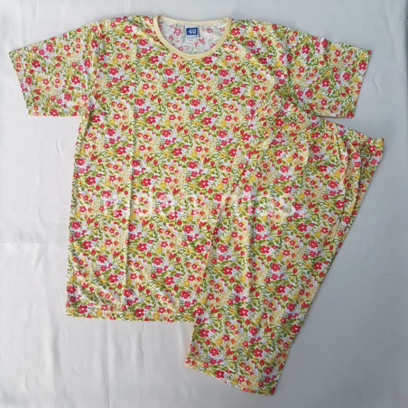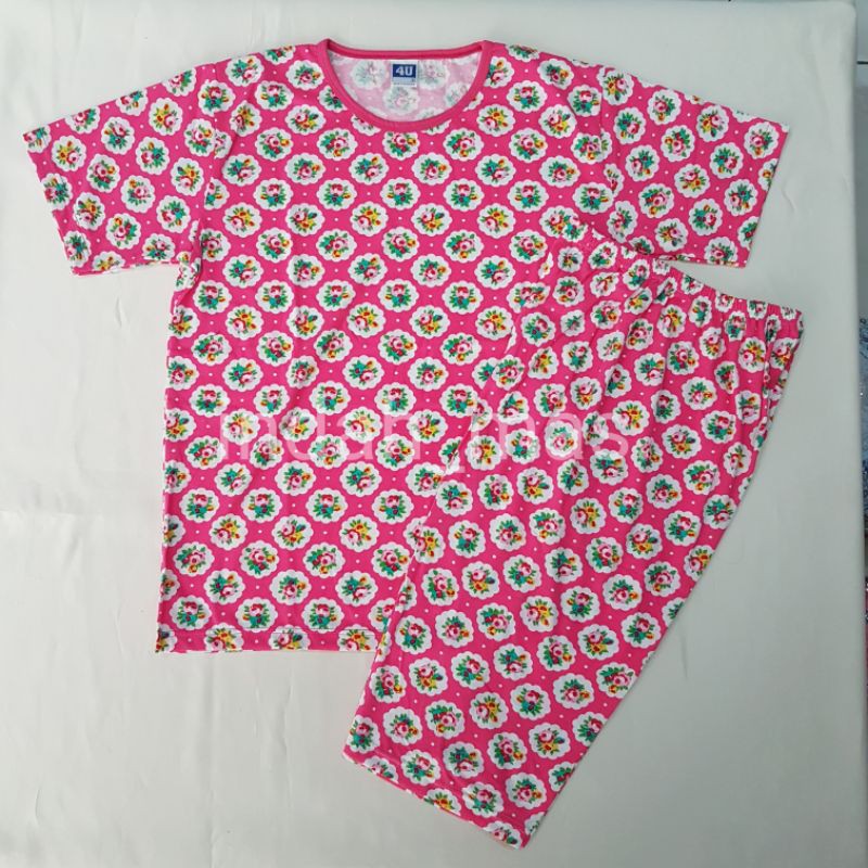 Stelan piyama 4U sontok tangan pendek celana 3/4