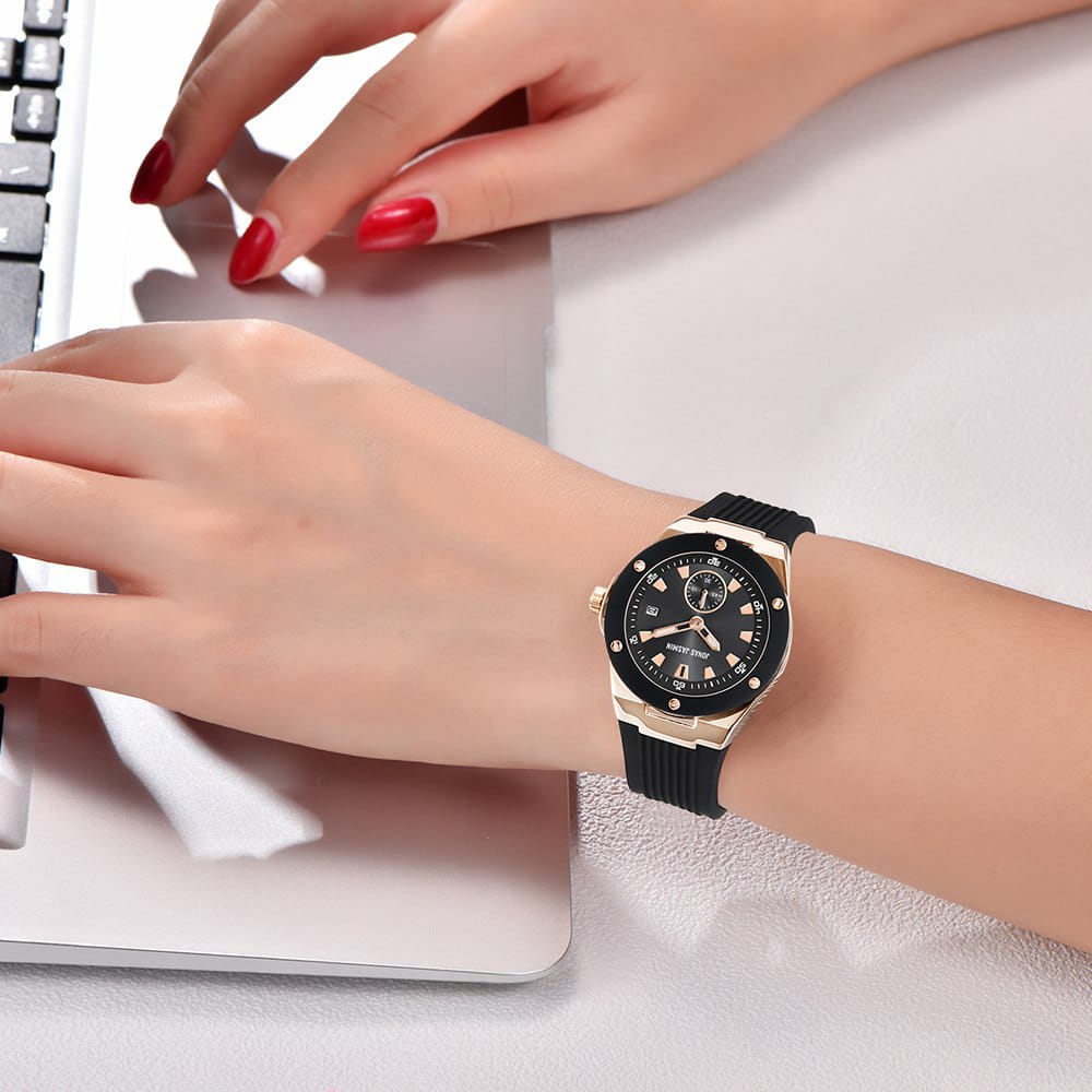 Jam Tangan Wanita Jonas Jasmin-2250L Tali Rubber Body Bulat Chrono&Tanggal Aktif