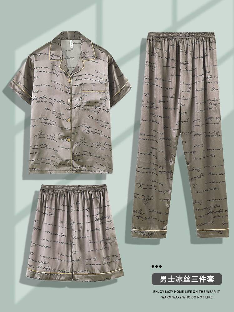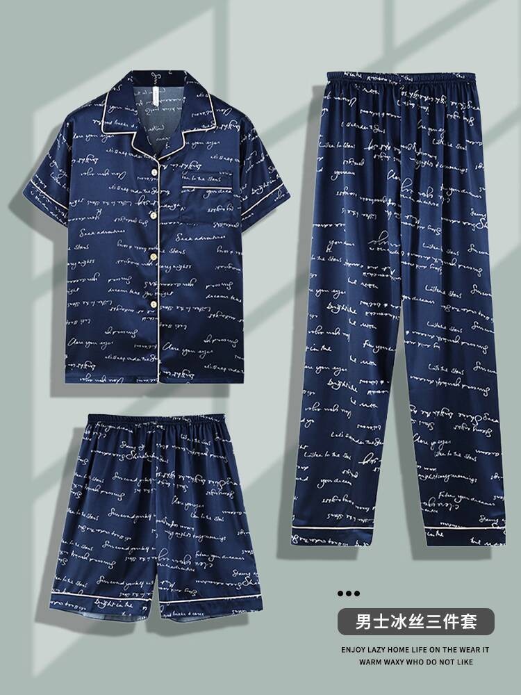 Set Piyama Es Panas Lengan Pendek Tipis Ukuran Besar Sutra Semi Musim Gugur Pakaian Rumah untuk Pria Paruh Baya