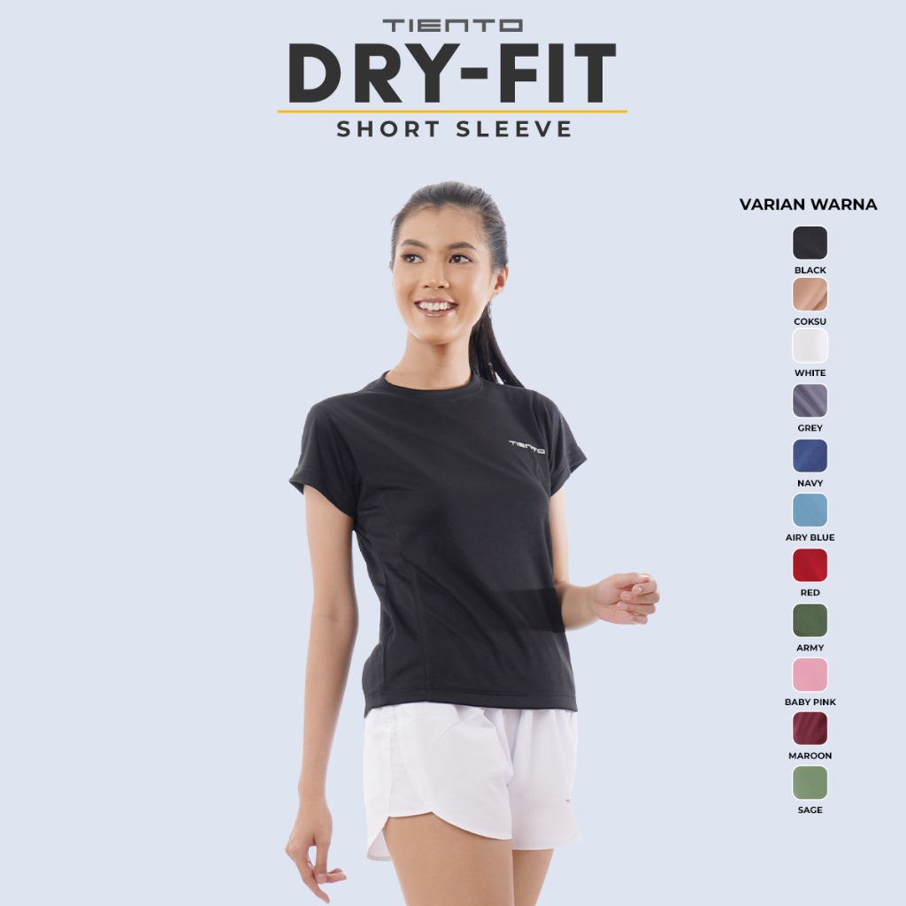 BAJU OLAHRAGA WANITA TIENTO SETELAN KAOS OLAHRAGA WANITA LENGAN PENDEK DRY FIT KUALITAS PREMIUM TERSEDIA SIZE S - 5XL