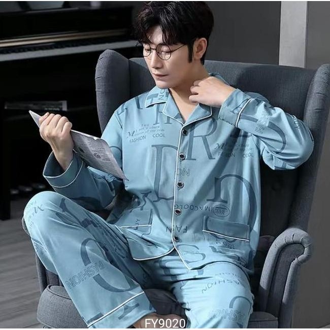 Baju Tidur Piyama Setelan Pp Cowokpria Dewasa Bahan Kaos Katun Lengan Panjang Celana Panjang
