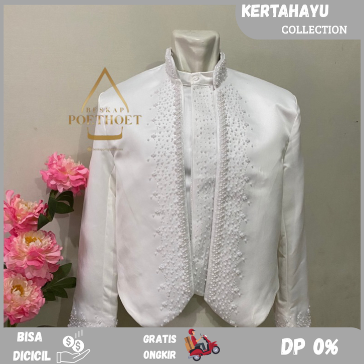 beskap pengantin Jas beskap pengantin Jawa solo hewes akad putih Payet elegan simple free selop