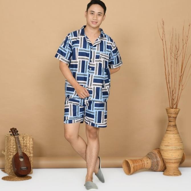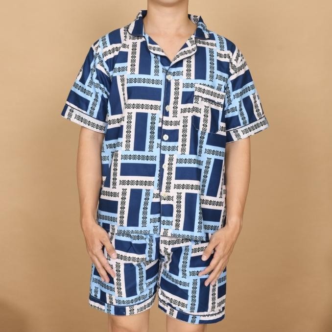 Siap Kirim Nyenyak Piyama Pria size XXL ( HPXXL ) Bahan Katun Sintetis / Setelan Baju Tidur Pria Motif Cowok / Atasan Lengan Pendek Celana Pendek - 1