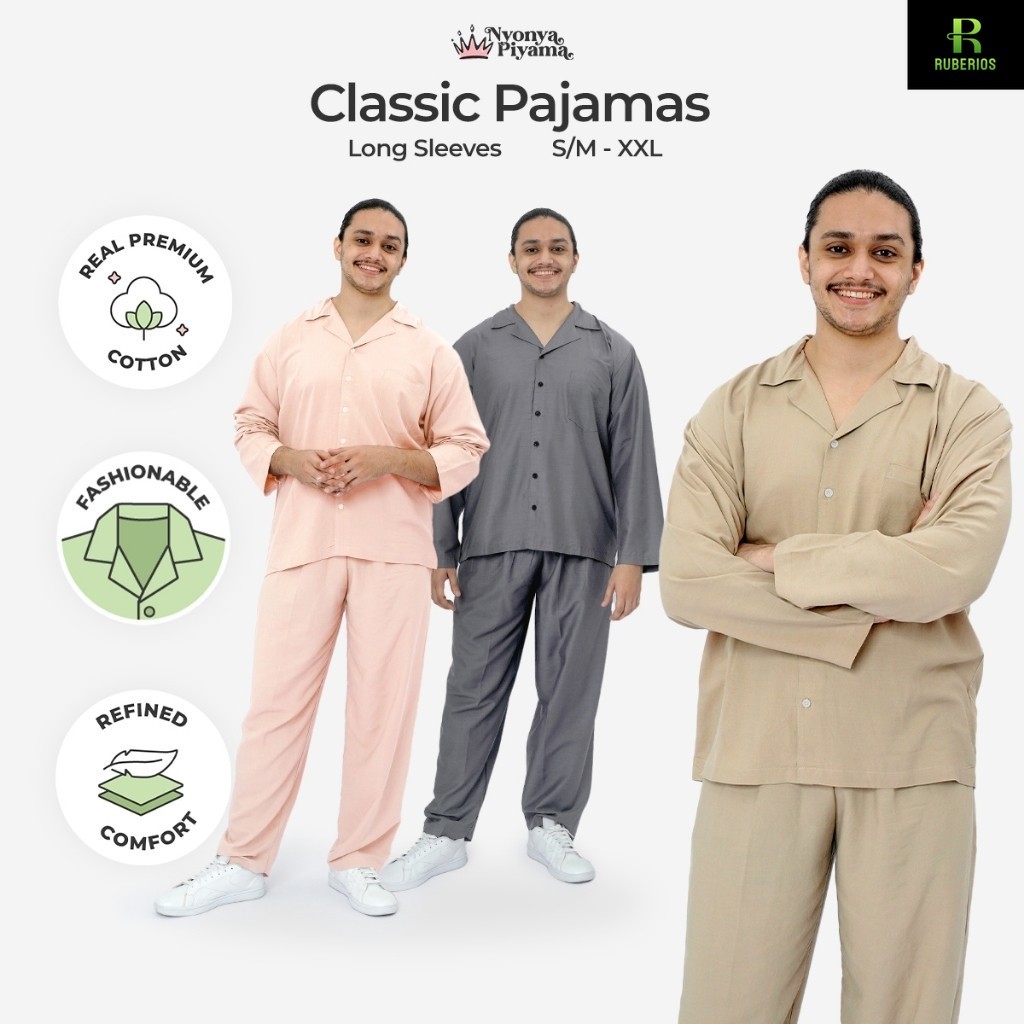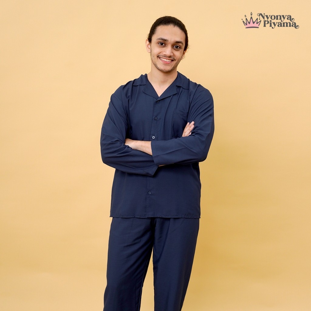 [BEST SELLER] Nyonya Piyama Katun Classic Signature Set Lengan Panjang Polos Pria