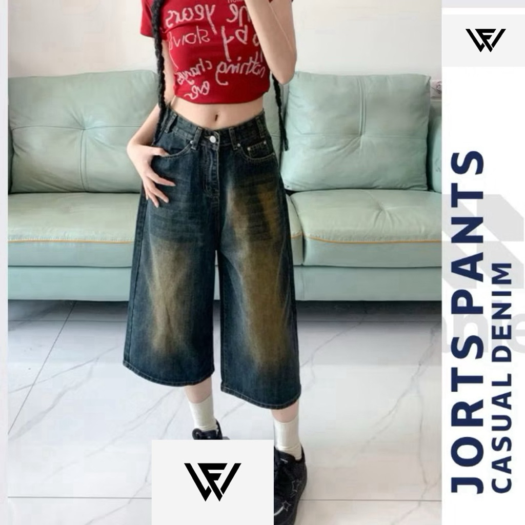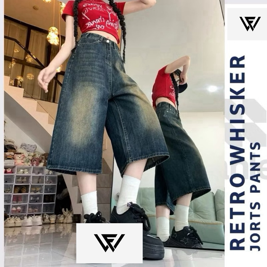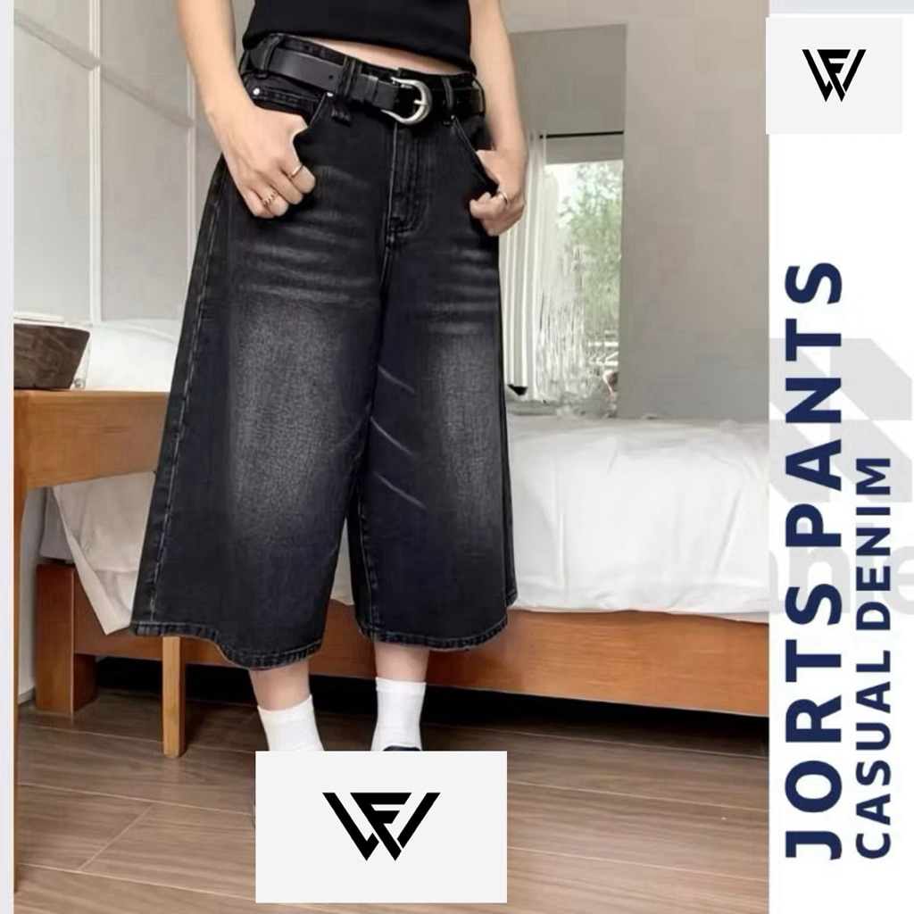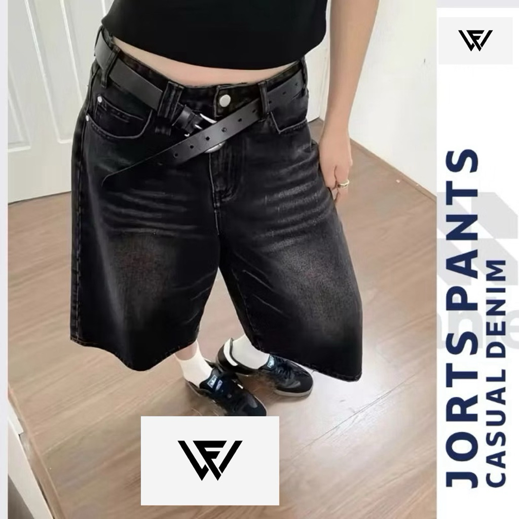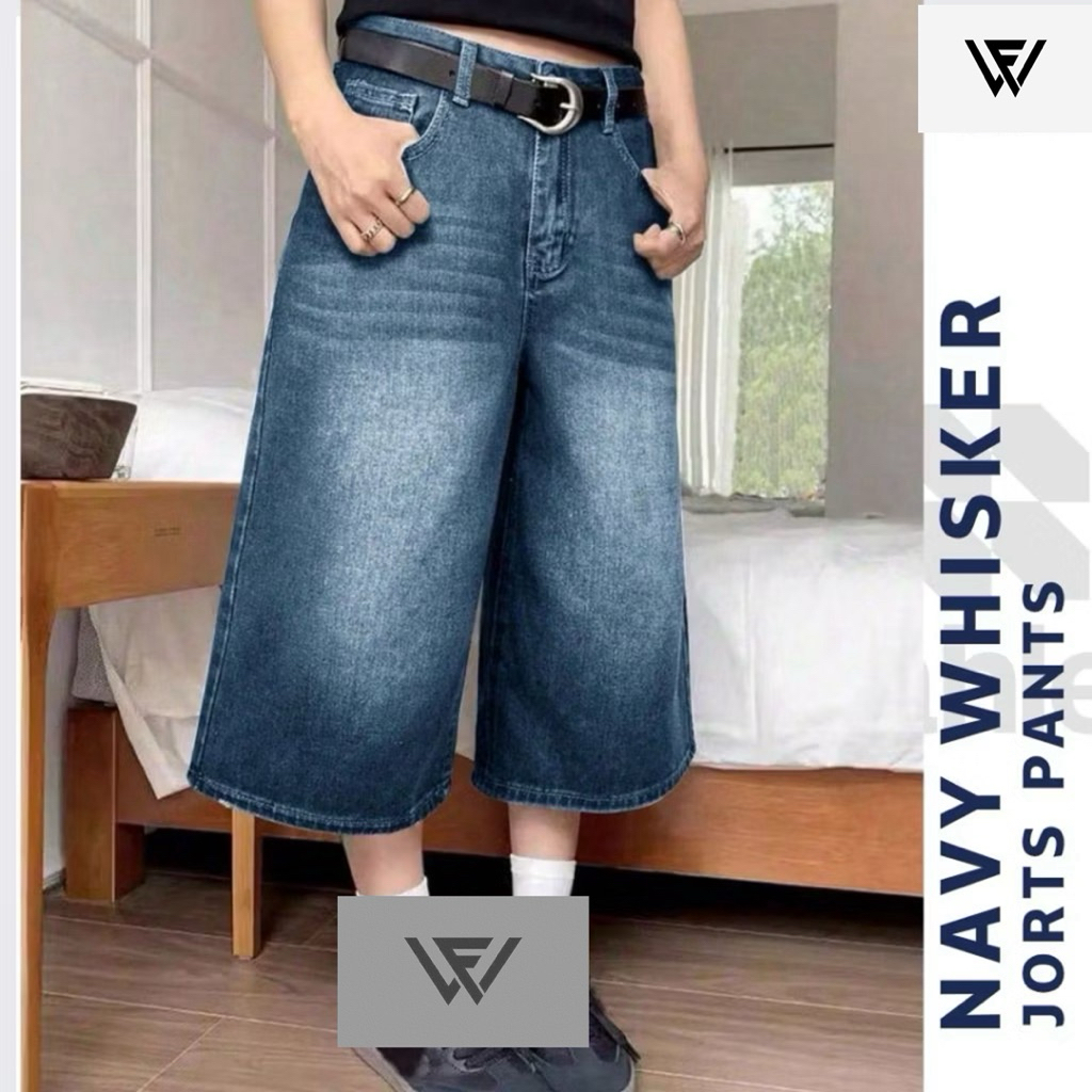 ( UNISEX ) Jeans jorts Baggy Jeans Short Wisker Pria Dan Wanita