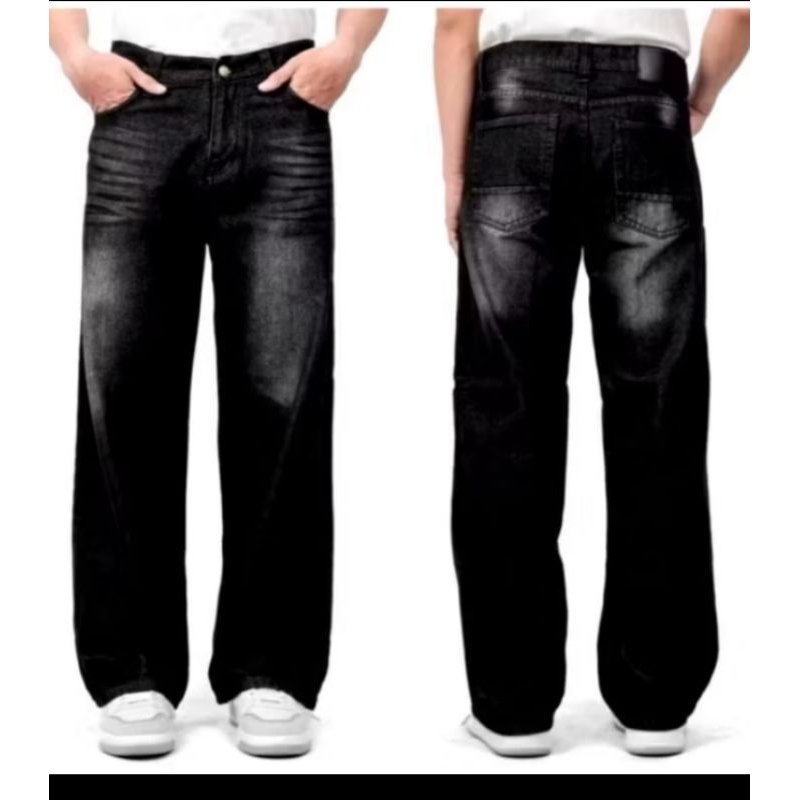 Celana Jeans Pria Wisker Gombrong Wide Leg Lebar SCENA