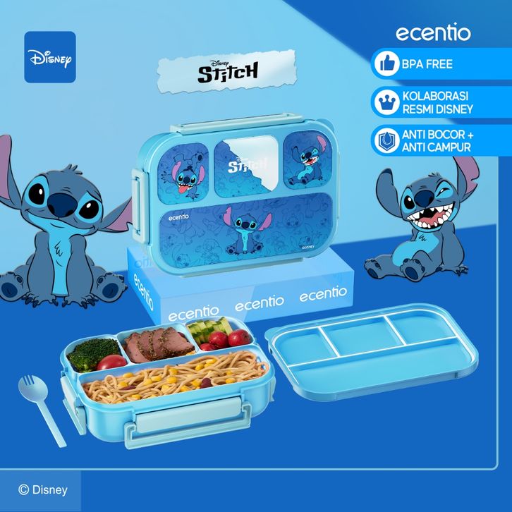 【Lotso & Stitch lunch box set】ecentiokids x Disney tempat makan anak sekolah 4 sekat kotak bekal anti tumpah 1000mili +
