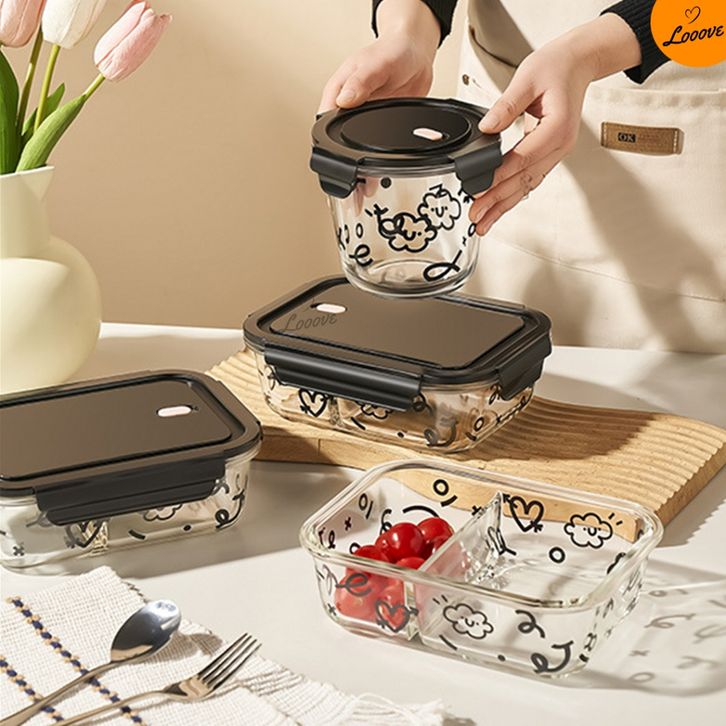 Kotak Makan Tempat Bekal Kaca Transparan motif / Glass Lunch Box Food Container - Cloud Lunch Box