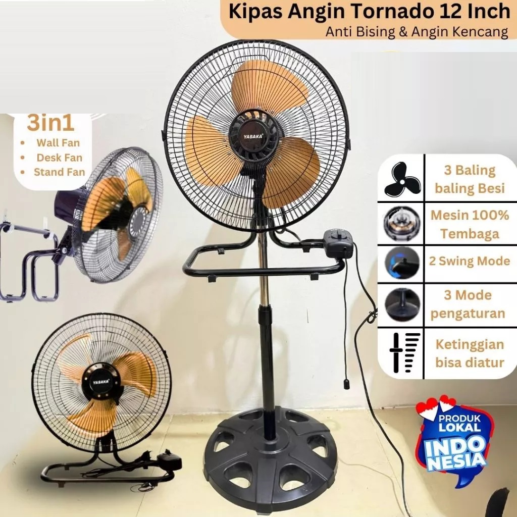 Kipas Angin Besi Tornado Fan 12” 3in1 Wall Fan Hemat Daya Kencang