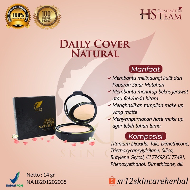 DAILY COVER NATURAL SR12 / BEDAK NATURAL / MENUTUPI FLEK HITAM BEKAS JERAWAT / MAKEUP TAHAN LAMA