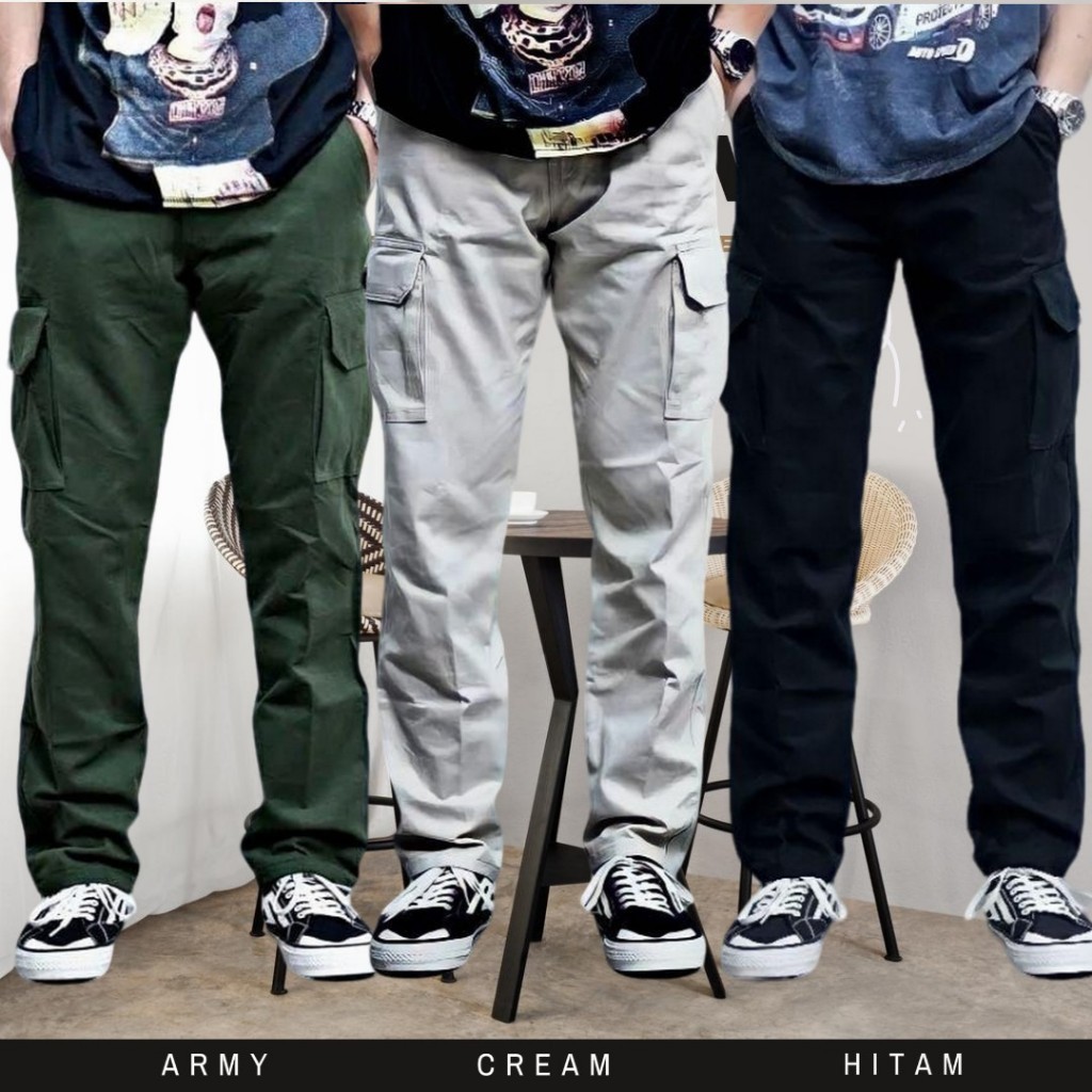 PROMO PAKET SUPER HEMAT 90 RIBU DAPAT 3 PCS CELANA PANJANG CARGO PINGGANG RIB KARET