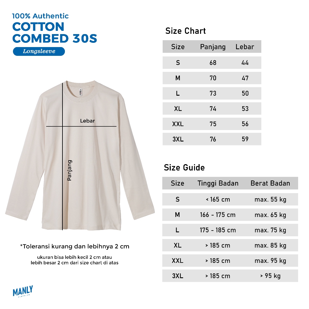 PREMIUM KAOS POLOS ASLI COTTON COMBED 30S - LENGAN PANJANG PRIA - Light Blue