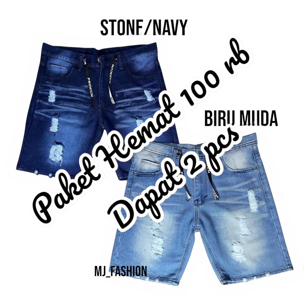 Paket Hemat 100 ribuan dapat 2 pcs celana jeans pendek sobek tembus pria dewasa dan remaja standar dan jumbo