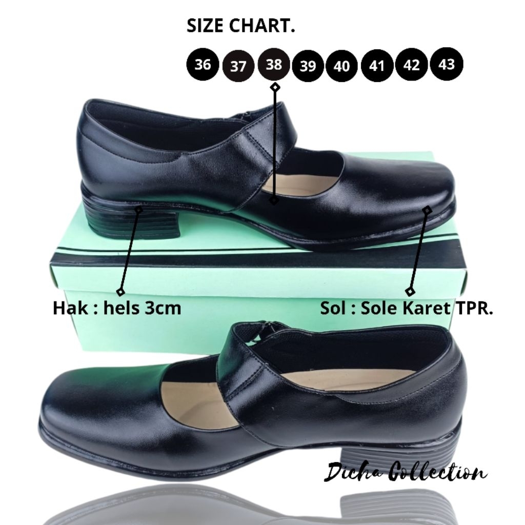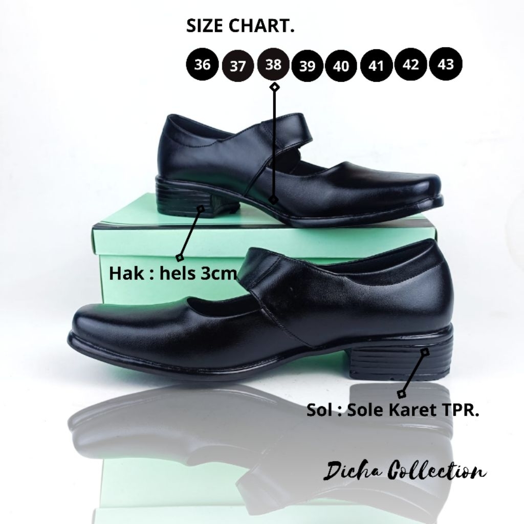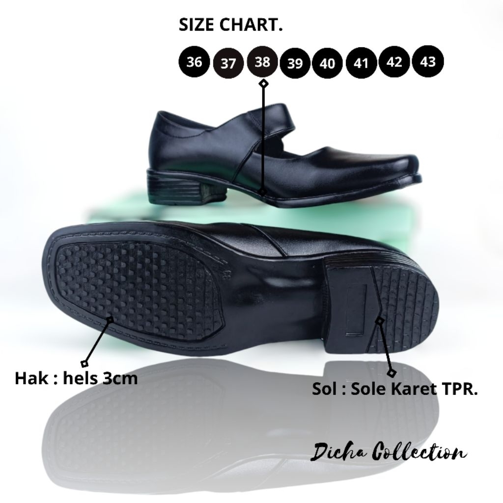 Bringluck || Sepatu Pantofel Wanita Kulit Hitam Paskibraka Hak 3cm