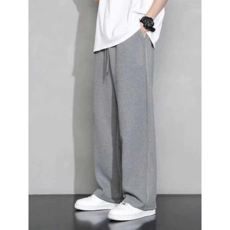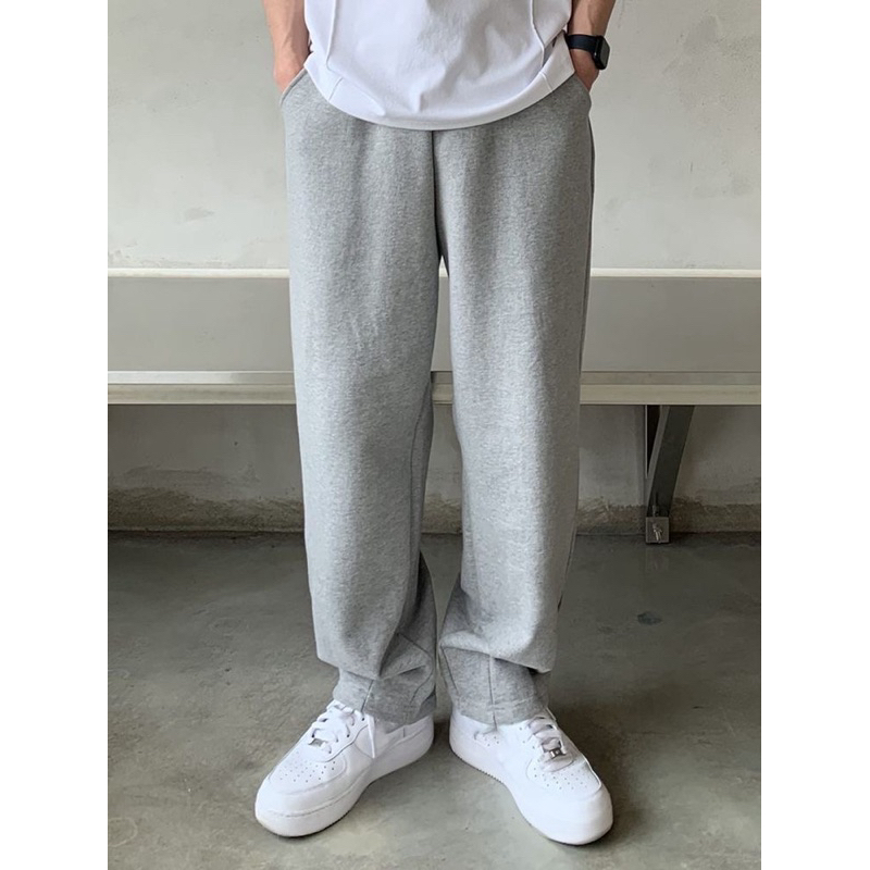 Celana Joger Panjang Baggy Loosepants Pria Wanita Bahan Katun Fleece Warna Hitam Dan Graymarl