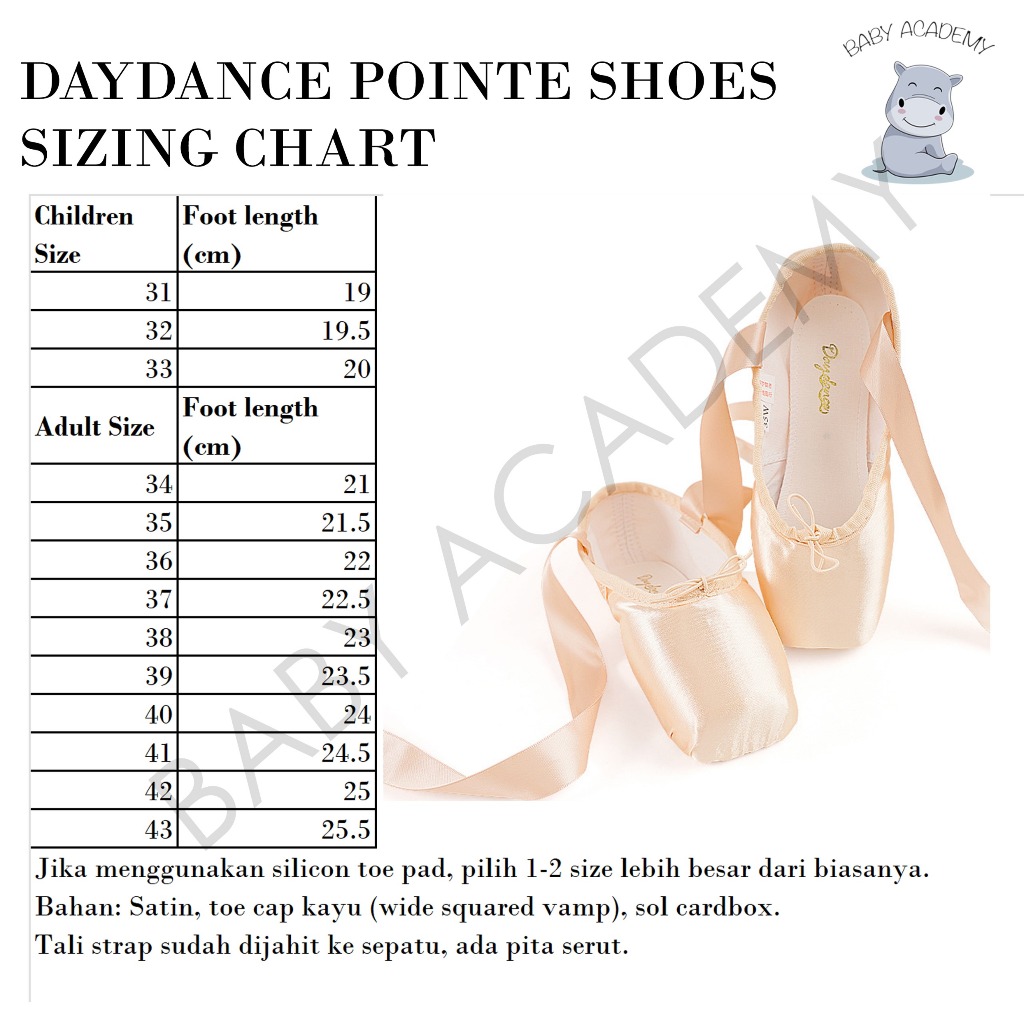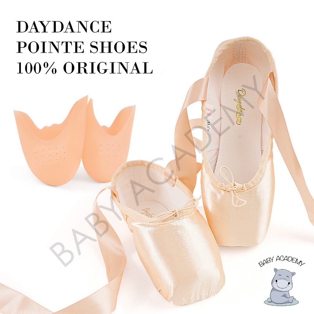 Daydance Satin Pointe Shoes Silicon Toe Pad Original Sepatu Balet Ballerina Anak Perempuan Wanita Dewasa