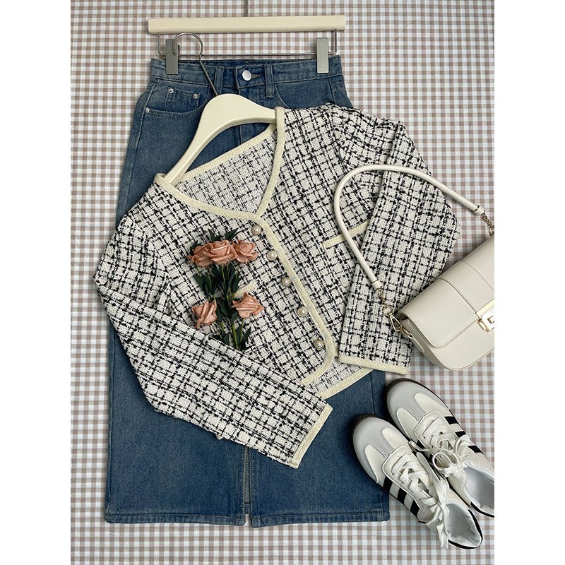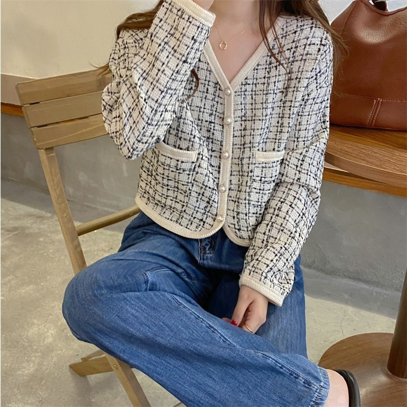 SEZO. jaket wanita korean style V-Neck jaket crop wanita outerwear pakaian Wanita retro import