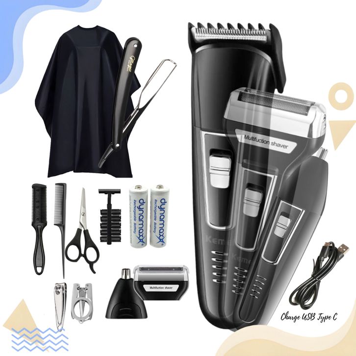 PREMIUM Kemei Shaver Multifungsi 3in1 Hair Clipper Nose Trimmer Dual Blade Port Usb Type-C Paket Lengkap ebigc