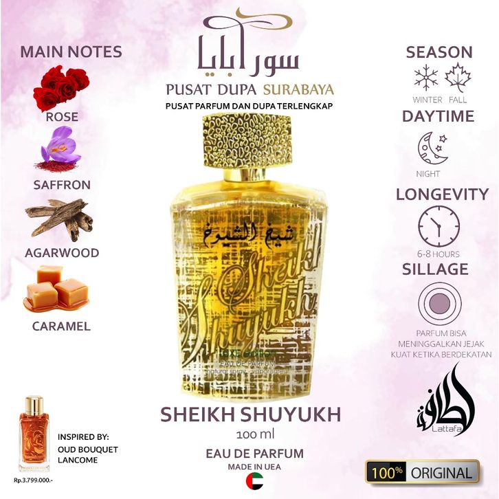 Parfum Asli Arab Original Premium Lattafa/Dubai/ Sheikh Al Shuyukh/Pria/Wanita/Unisex/Aroma Oud/Oleh-oleh haji