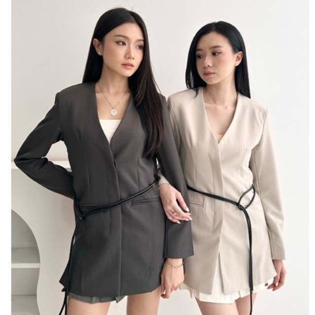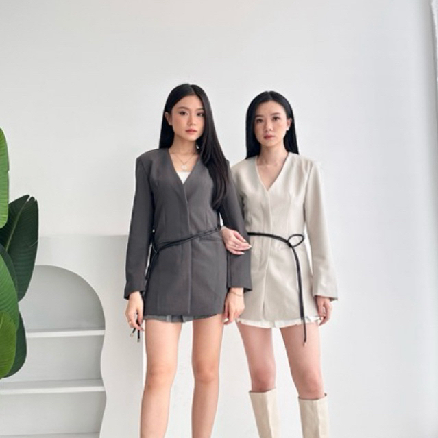 [ MAFIA ] YOGANE premium Blazer wanita with belt black grey | Blazer full furing wanita