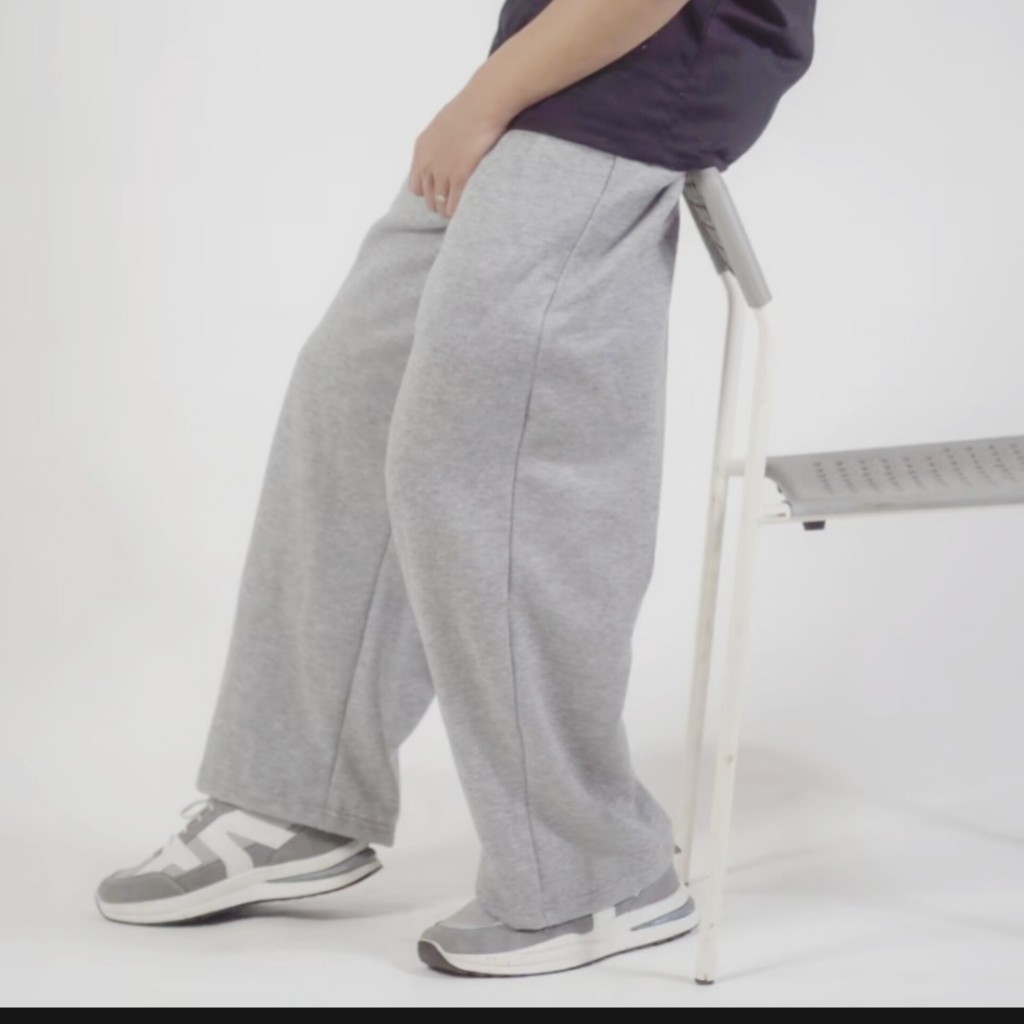 Celana Baggy Sweatpants Pria Pinggang karet Korean style Bahan Fleece