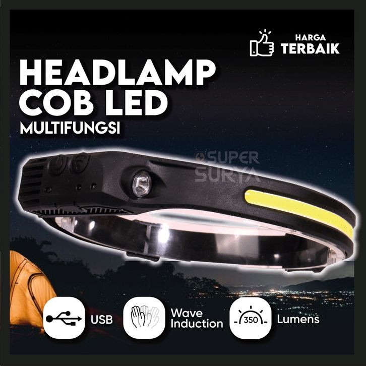 Senter Kepala Super Terang Headlamp LED 4 Mode Cahaya COB Sensor Wave